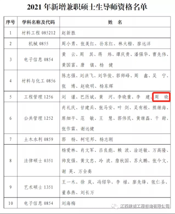 获聘为硕士研究生导师一方面是周晓总经理的个人荣誉,另一方面也反映出鼎诚公司的行业优势及工程实践经验得到社会的认可。继南昌航空大学土木建筑学院研究生实践基地成立之后,校企合作又迈出了坚实的一步。2022年,杏彩在线客服将一如既往的承担起应有的社会责任,积极响应政府的人才强省战略,分享工程管理实践经验。与高校共同努力实现校企合作双赢,推动行业及地方经济发展贡献一份力量。